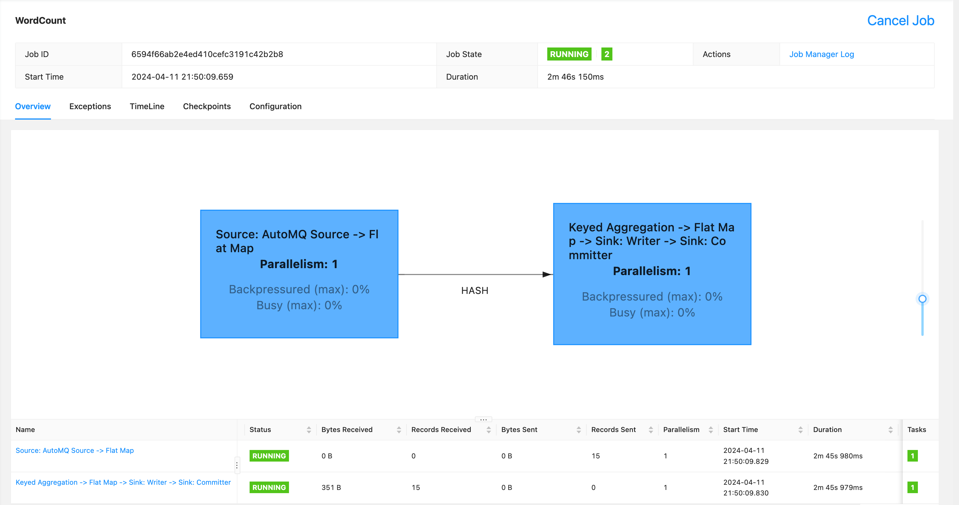 This document uses Flink version v1.19.0. Follow the official documentation Flink First Step to deploy a v1.19.0 Flink service.Install and Launch AutoMQ