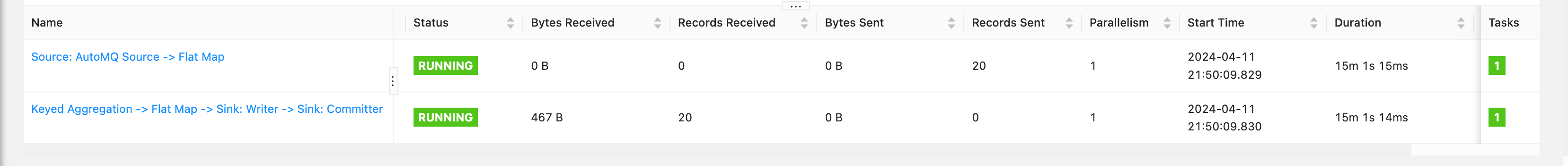 Execute the following command to submit the task jar to Flink. Through the console, we can see that 15 pieces of data have been received and processed.
