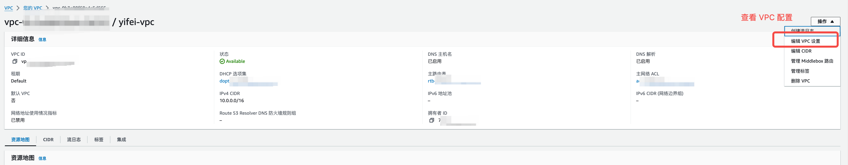 访问已有 VPC 网络,点击详情,查看 VPC 配置。
