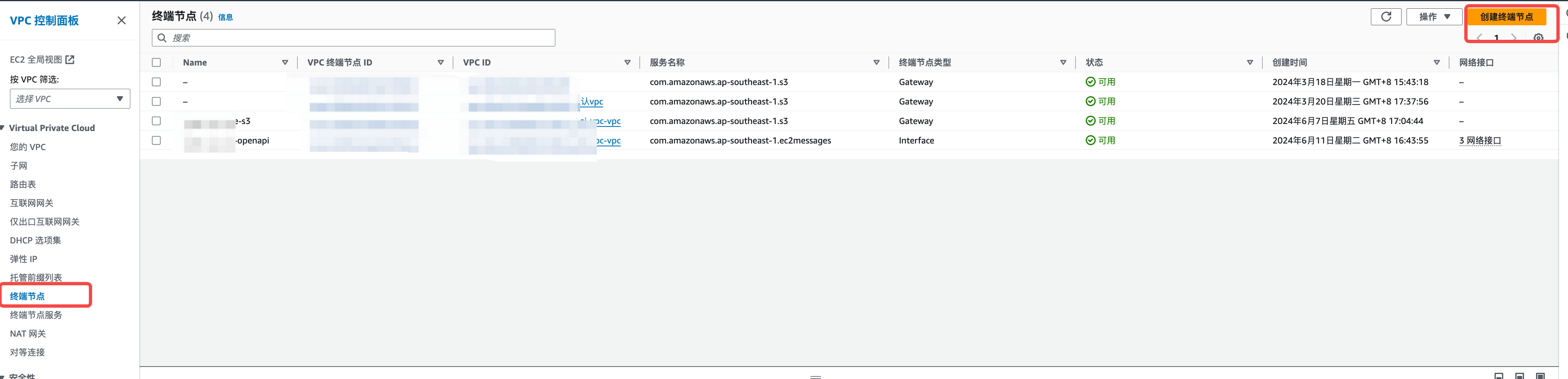 在当前 VPC 内检查并创建 EC2 Endpoint,方便后续数据节点通过私网访问 EC2 API。