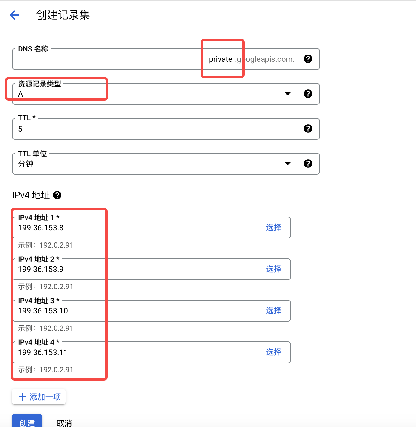 - 在上一步创建好的 DNS Zone 内添加私有解析记录。