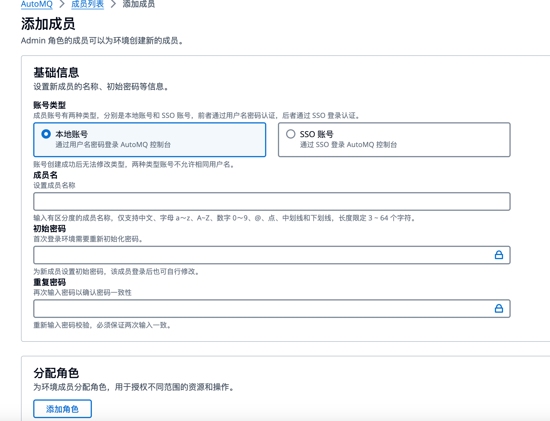 - 本地类型: 本地类型是默认成员账户类型,使用静态用户名和密码登录认证。